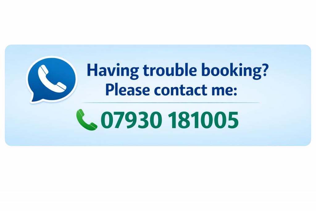 - Simple booking process — choose your time, pay securely, get instant confirmation.